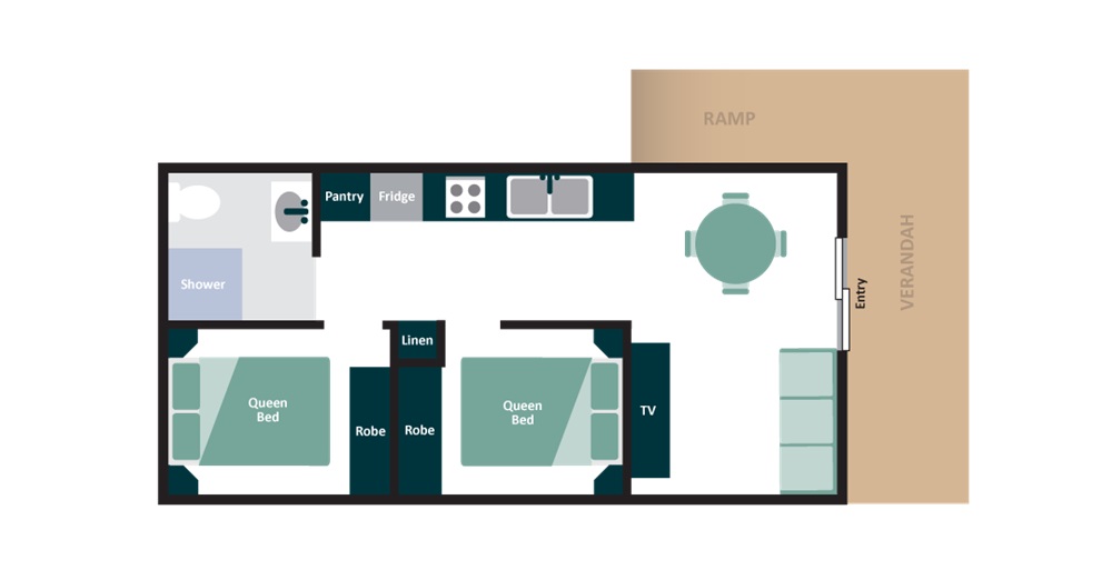 With a contemporary style, accessible cabins at Echo Holiday Parks – Renmark are designed for an inclusive experience.
